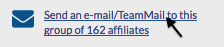 3. You can send a group message to all or any segment of the affiliates in your Genealogy. Use your Filters to pull up a group you wish to mail. Then, click the Send an e-mail/TeamMail to this group link located to the left side of the info box at the top of your Genealogy report.
